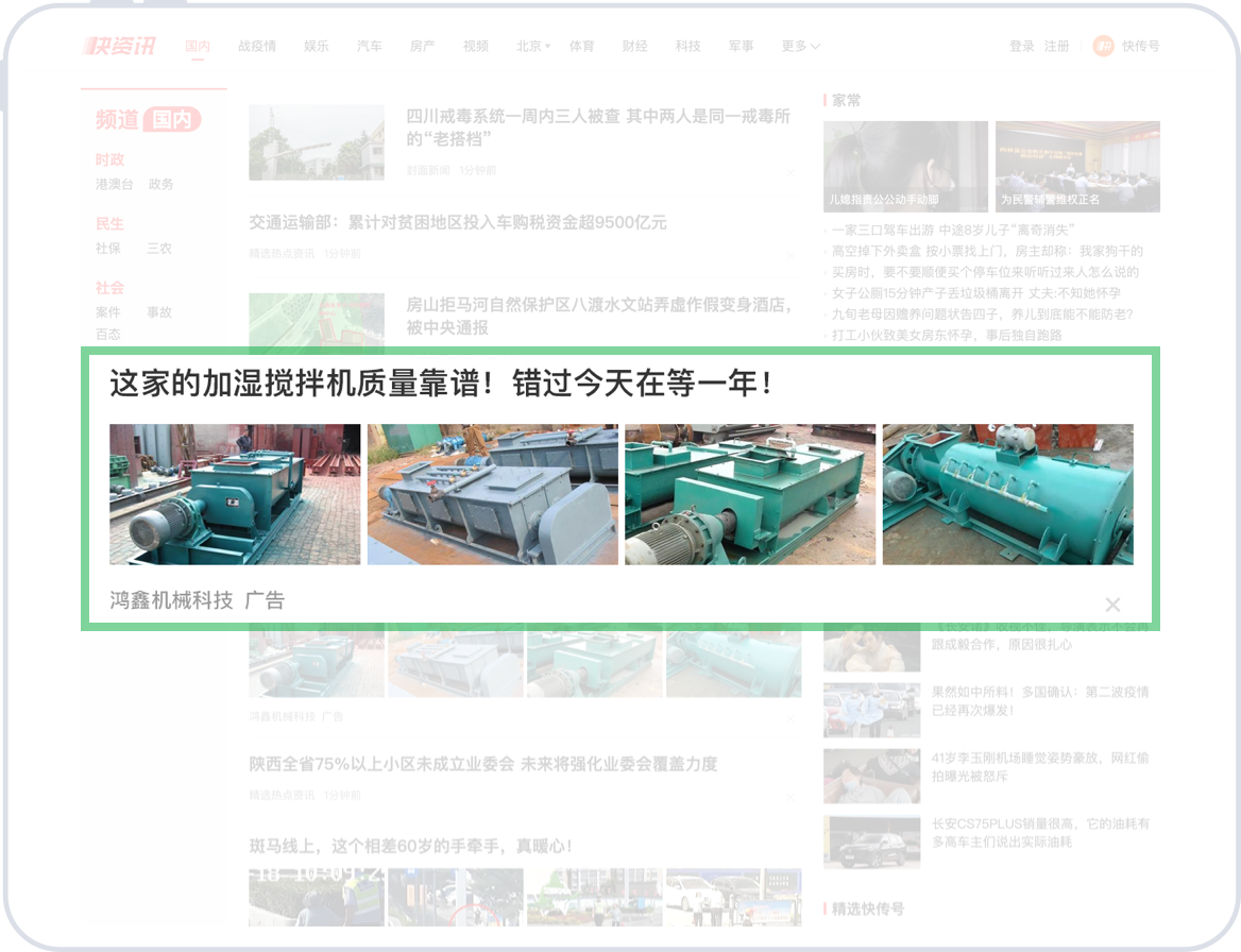 丰富的广告样式,通过优选和智能拼接,个性化展现,针对性强